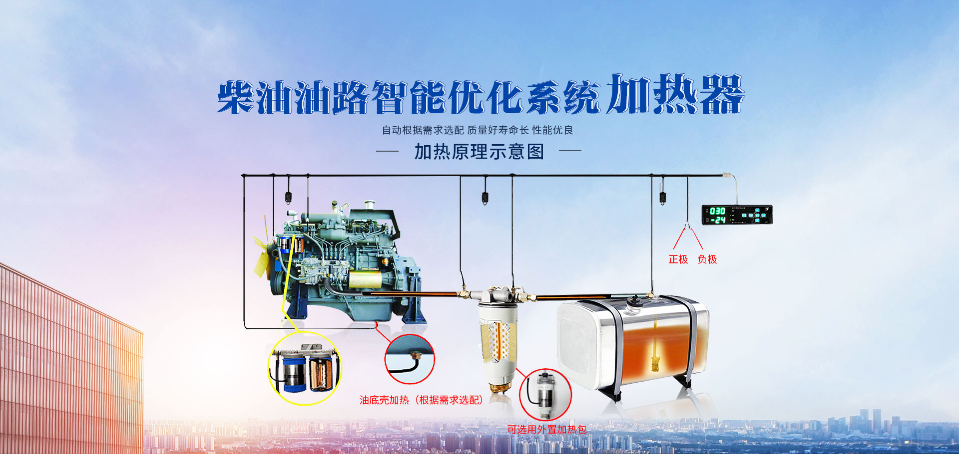 柴油油路智能優化系統中涵蓋柴油智能加熱、液壓油加熱、機油油底殼加熱、柴油車冷車啟動以及燃油節能啟動模塊等系列產品